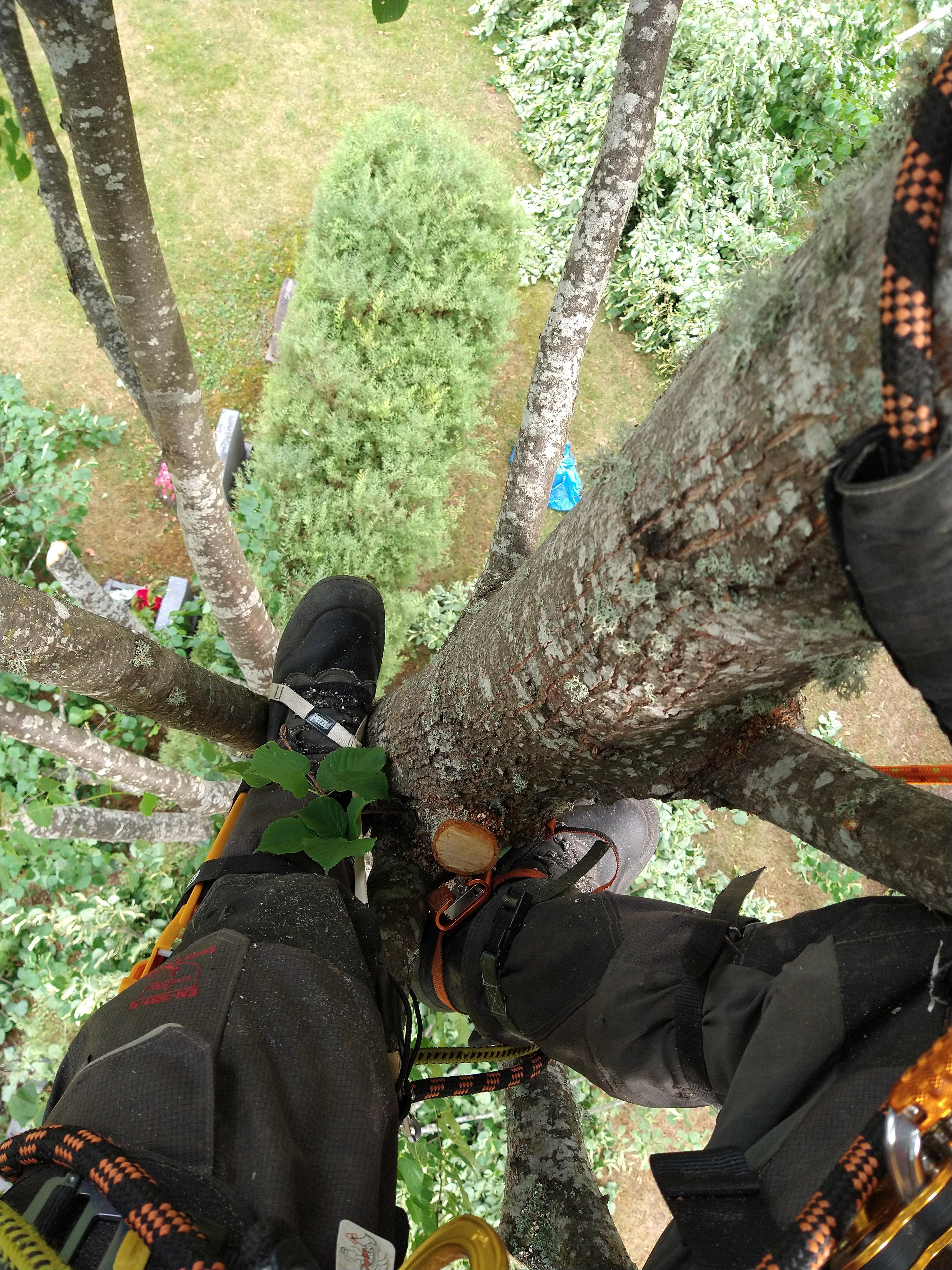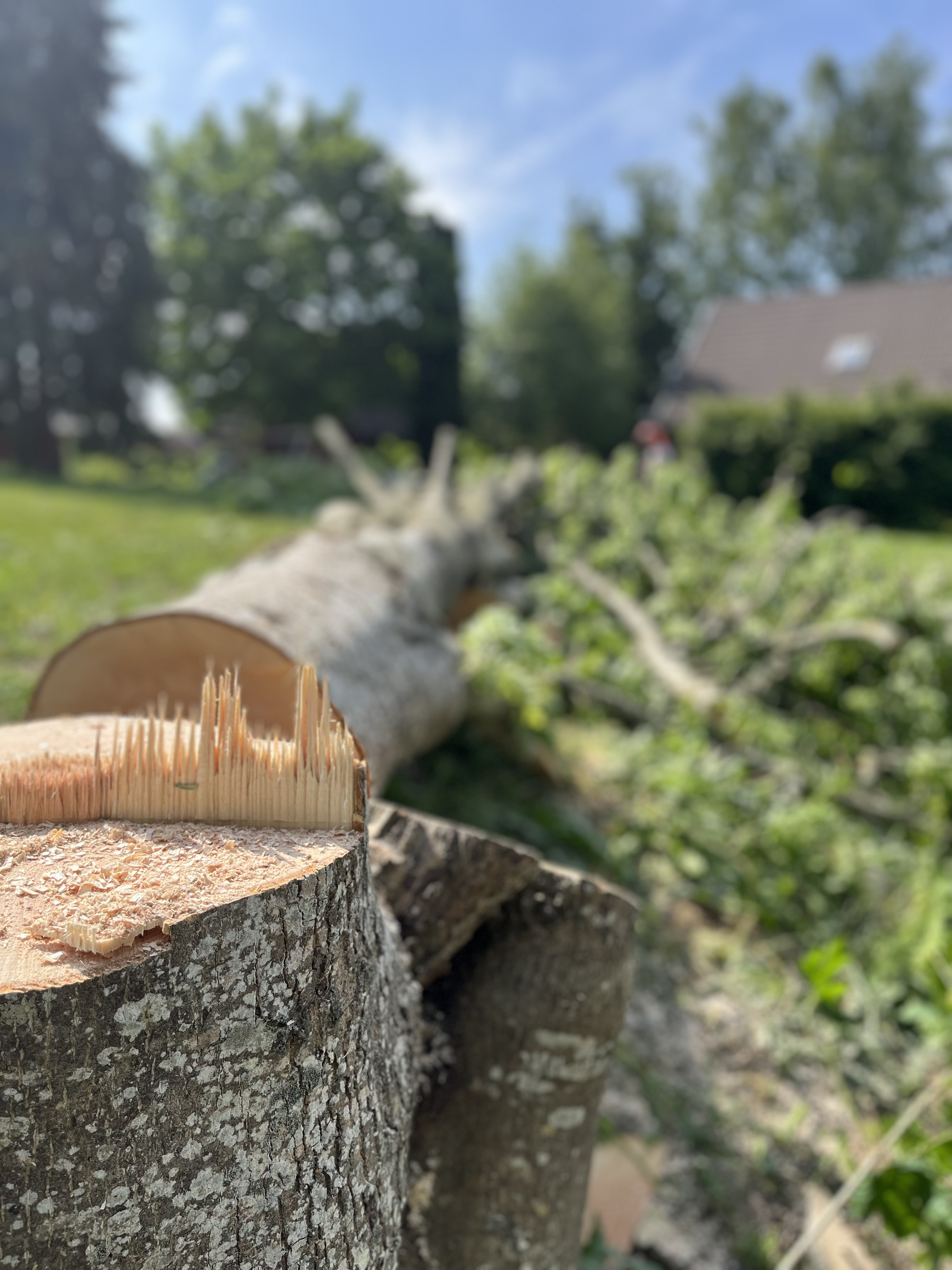 Omsorgsfull fällning i mindre sektioner för att undvika skador i omgivningen.